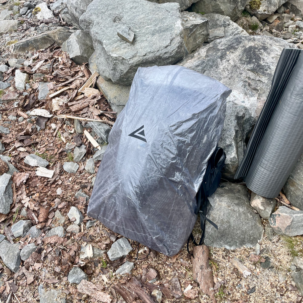 ***このレインカバーを被せた状態で、重量のあるバックパックを地面に無造作に置くと、鋭利な石や岩などで穴が開くことがありますのでご注意ください。穴が空いた場合は付属のDCFリペアシートで簡単に修理可能です。